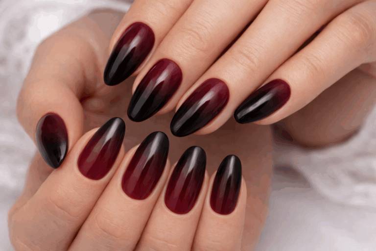 Bordo-siyah degradeleri, derin ve gizemli bir stil arayanlar için mükemmeldir. Koyu geçiş, dramatik bir hava katar ve deri giysiler, uzun kabanlar veya metal aksesuarlarla kombinlenir. Bu görünüm genellikle, pürüzsüz ve kalıcı bir bitiş elde etmek için jel oje gerektirir.