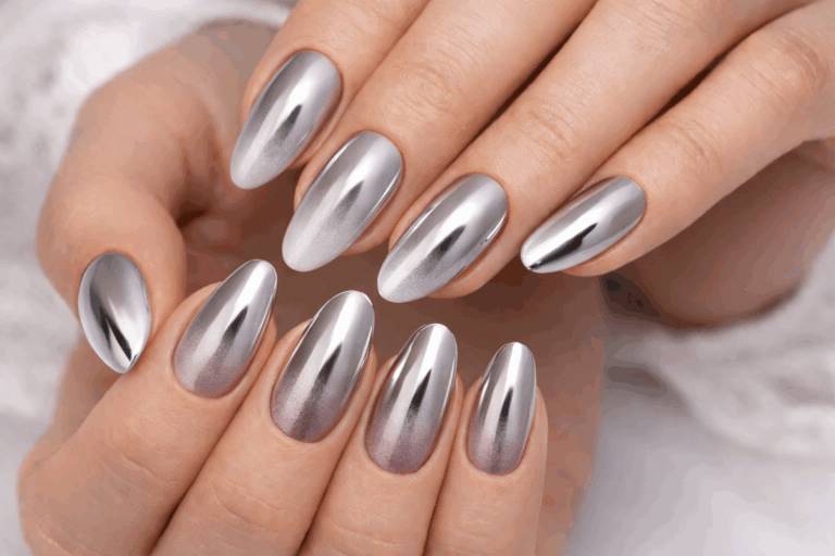 Krom bitiş, parlayan bir metalik görünüm sunarak cilalı buzu anımsatır. Nude-gümüş veya mavi-gri degradelerde, chrome etkisi tırnakları dikkat çekici bir aksesuara dönüştürür. Krom tozu ve UV lambası gerektirse de, sonuç etkileyici olup modern ve minimalist kıyafetlerle uyum sağlar.